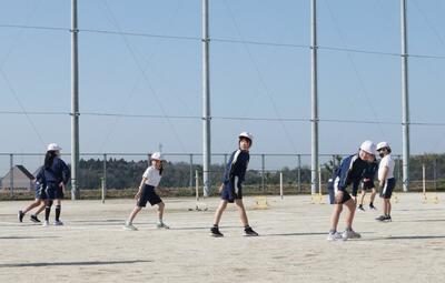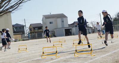 3年2組は,体育で,ミニハードル走やリレーをしていました。先生のアドバイスを受けて,何度も練習していました。