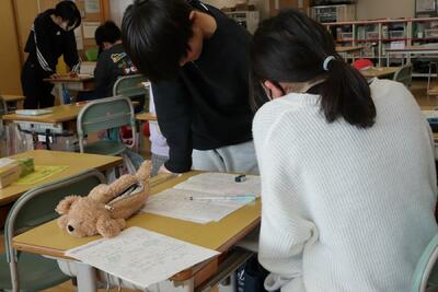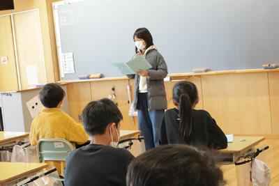 4年2組は,『10年後のぼく(私)』に書いた手紙の発表をしていました。10年後の自分に語りかけるように手紙を読んでいました。夢や希望に満ちあふれた内容でした。