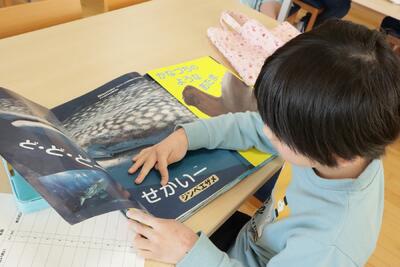 2年生は,図書室で読書です。「この本,おもしろいです。見て。」と声をかけられました。2年生なりに,いろんなジャンルの本を選んで読んでいました。