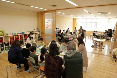 3年1組は,授業参観で,『かがやき(総合的な学習の時間)~☆☆のうつりかわり~』の発表です。保護者の方には,お子さんのいるグループに入っていただき,発表を聞いてもらいました。ご参観いただき,ありがとうございました。