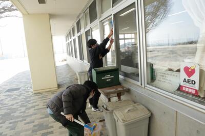 6年生は, 自分の靴箱,ロッカーをきれいにしていました。最後の清掃となりました。