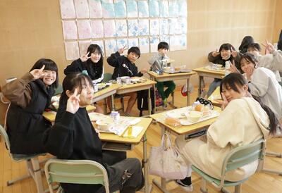 6年生は小学校最後の給食を友達と楽しく食べていました。