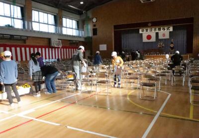 5,6校時は,4・5年生が卒業証書授与式会場の準備をしました。協力し合って,一生懸命に準備をしてくれました。卒業式に向けて準備万端です。