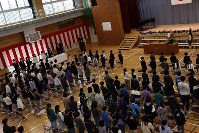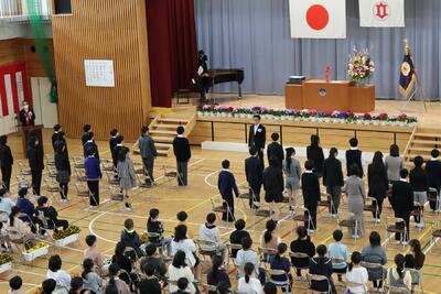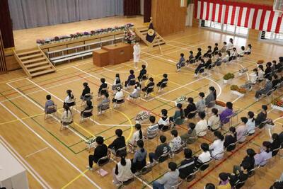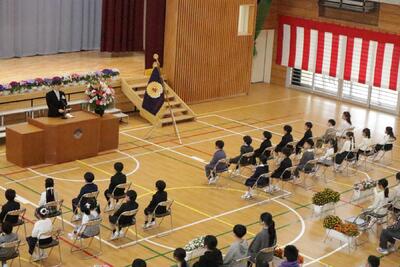 卒業式の予行練習(4~6年)がありました。体育館は本番さながらの雰囲気でした。1~3年生は,オンラインでの視聴になります。
