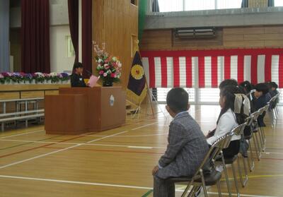 校長先生からは,各学年,進級したら頑張ってほしいことなどについてお話がありました。子どもたちは真剣に耳を傾けていました。